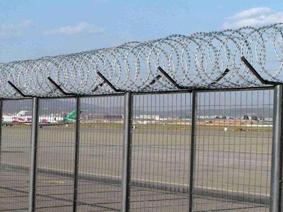 机场围栏又称作“Y型安全防御护网”,是由V型支架立柱加强型焊接片网,安全防盗连接件和热镀锌刀片刺网组成强度和安全防御性级别很高。被广泛应用在机场,军事基地等高安全场所。